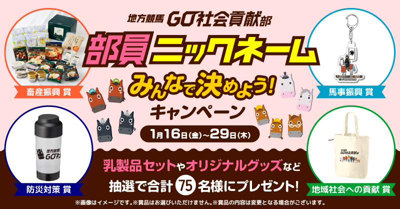 「みんなで決めよう!地方競馬GO社会貢献部 部員ニックネームキャンペーン」開催!