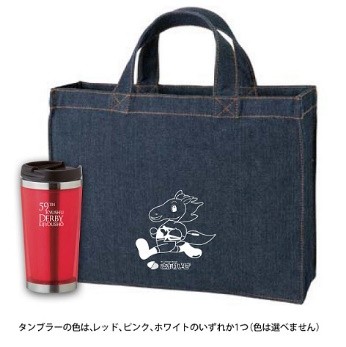 今回、このレースの実施を記念して製作した、『オリジナルタンブラー&デニムバックセット』を10名さまにプレゼントいたします。(提供:佐賀県競馬組合)