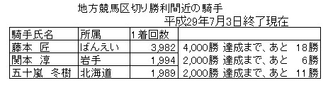 区切り勝利が近い騎手(7月)