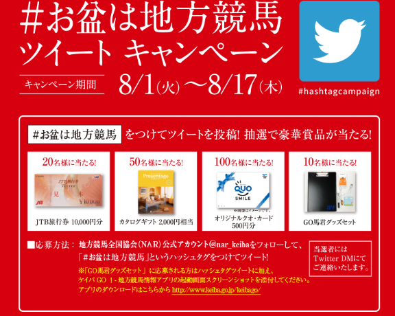 ・全国15ヶ所の競馬場を巡ってスタンプをゲット!訪れた競馬場の数に応じて豪華賞品が当たるチャンス!!詳細を特設サイトで確認して、ぜひご覧ください。