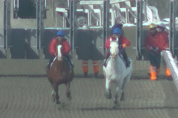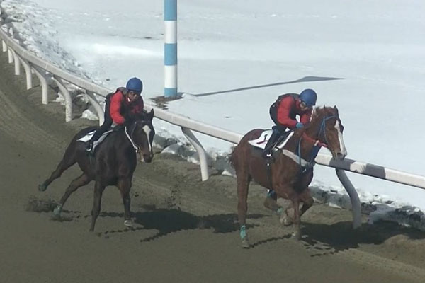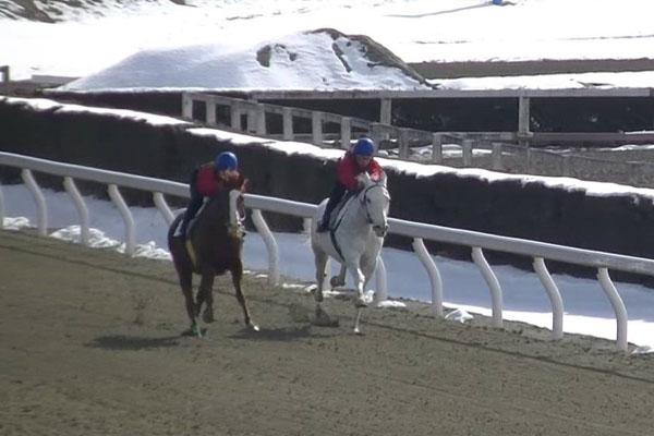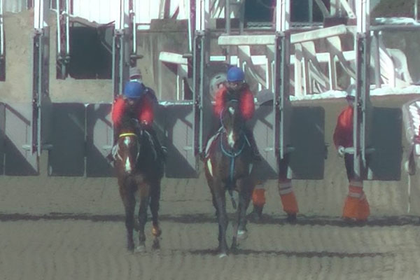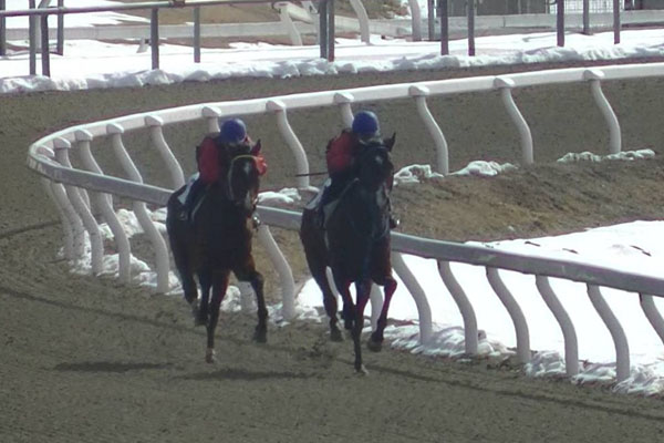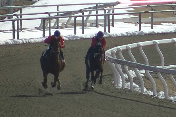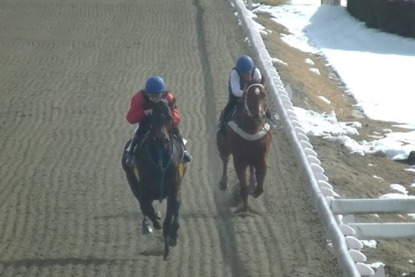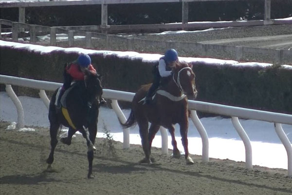こんにちは。97期です。今回紹介するのは「第2回発走から追い込み」です。雪で延期されたものの、1月31日に行われたこの訓練では、2頭でゲートから発走し、向正面から3,4コーナーまで併走を作ります。直線では馬の全能力を発揮させるようハンドライドで追います。全員のコメントを紹介していきます。