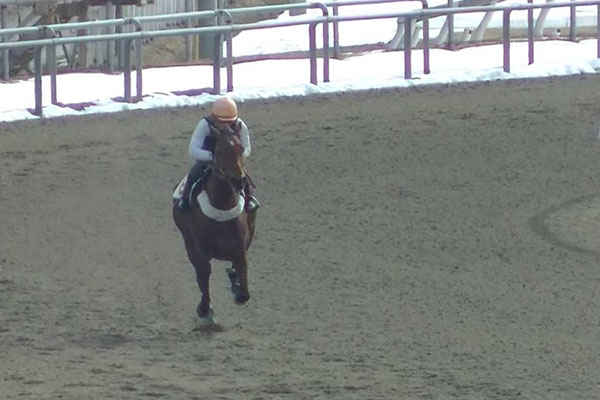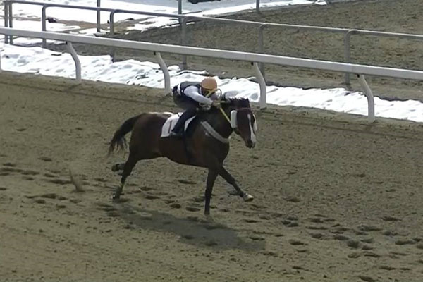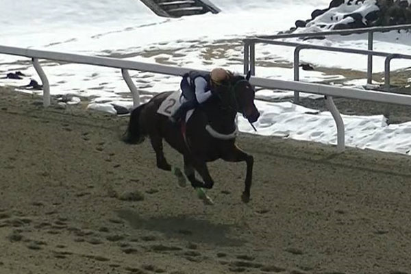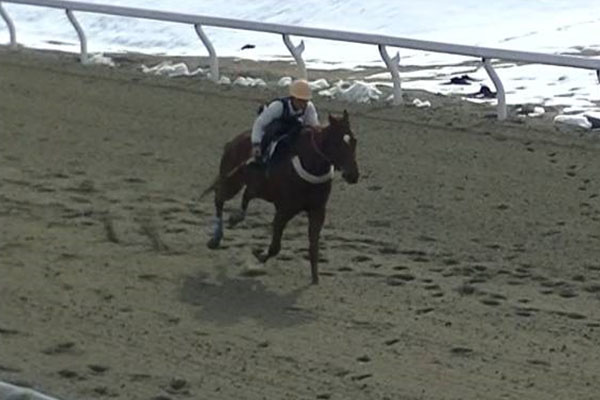 騎手免許試験第2次試験の技術の実技試験となる第1回修了実技試験に向けて、2月1日に単騎での「発走から追い込み」を行いました。