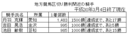 区切り勝利が近い騎手(3月)