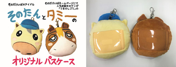 そのだ・ひめじけいばホームページで好評連載中のWebマンガ「うまのしごと」の作者、園田競馬の元きゅう務員田村正一さんが特別に書き下ろした非売品のオリジナルグッズ「そのたん」「タミータウン」のパスケースを各5名様、合計10名様にプレゼントいたします!(提供:兵庫県競馬組合)