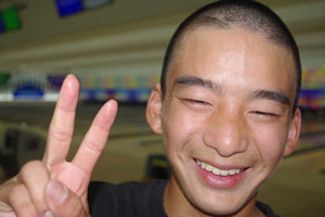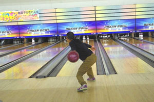 | ガーター連発の若杉君でしたが、 なんとこの後、奇跡のストライク! 全員驚愕(きょうがく)でした。(笑) |