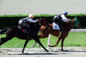 コーナーで膨らまず、直線に真っ直ぐ入ることが出来ました。しかし、直線の前半は手綱の詰め替えがスムースに出来ず、*1)ハンドライドや*2)見せ鞭を馬の動きに合わせることが出来ませんでした。最初から後半まで、馬に合わせて追えるようにしていきます。