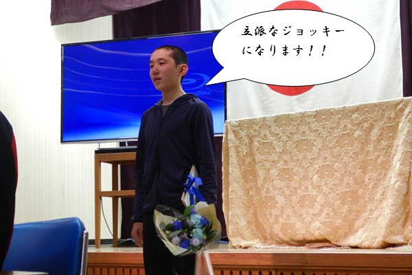 96期の仲原大生先輩は、11月1日、無事に免許試験を兼ねた修了実技試験を終了され、11月2日から28日の教養センター修了まで、競馬場実習先である大井競馬場に出発されます。