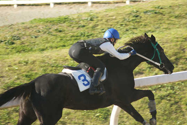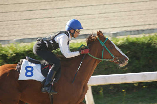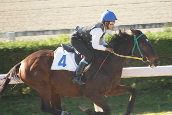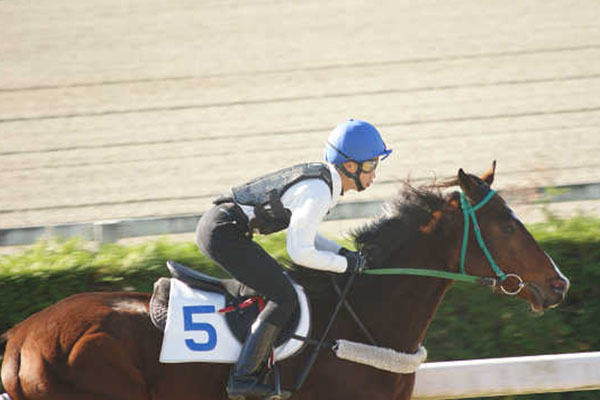 今日は、初めての1ハロン(200m)12秒の速さを体験しました。今日は馬のスピードに馴れる事が目的でした。馬のスピードに馴れる事はできましたが、姿勢をしっかりとれていなかったので、日々の訓練を頑張ります。