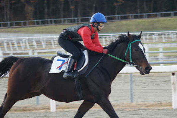 前回の馬なりを踏まえ、馬の動きに合わせてコントロールすることを自分の中での課題として臨みました。ペースが遅く、馬の能力を引き出す感覚を掴む(つかむ)ことが出来ませんでした。今後は、訓練の中で繊細(せんさい)に馬の能力を感じられるように心掛けていきたいと思います。