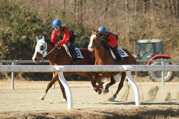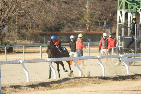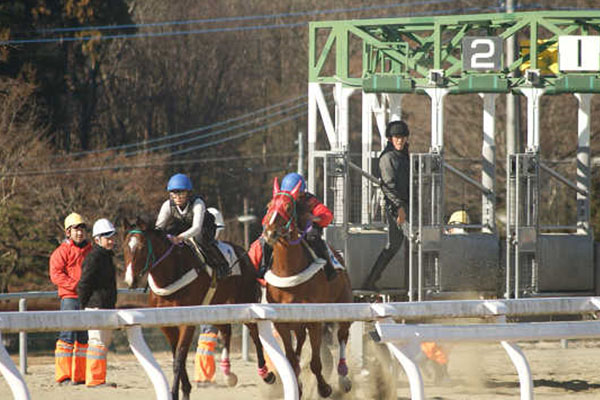 99期にとって2回目となった今回の発走訓練は、1月11日、2騎併走で行いました(人数が奇数のため、魚住くんは単走で行いました)。