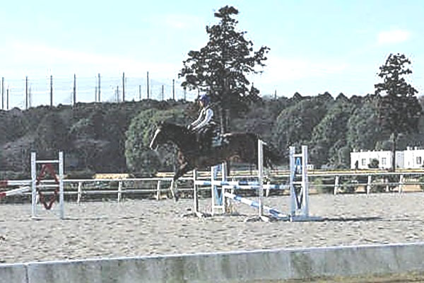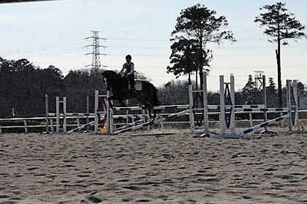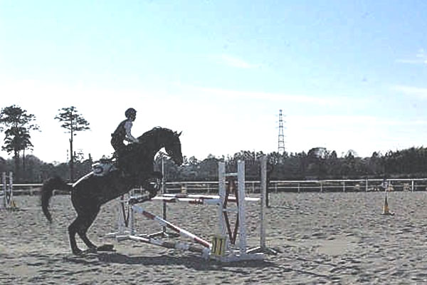 初めて乗った馬で少し緊張しましたが、身体を起こして向かう事ができ、ノーミスで経路飛越が出来ました。鐙(あぶみ)が踏めなくて、高飛びした時に鐙が深くなっていたので、鐙をちゃんと踏めるようにします。