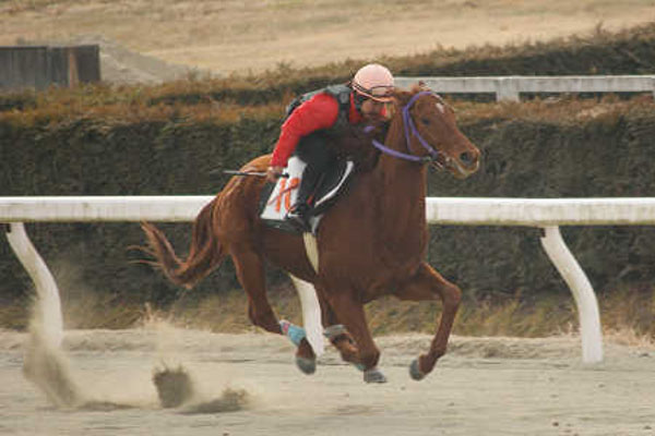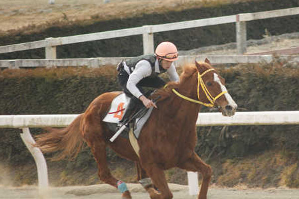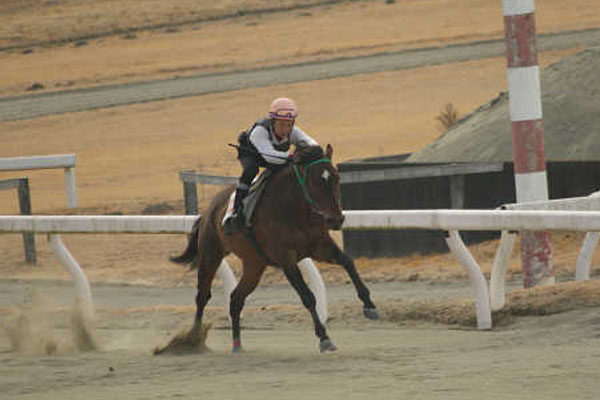 今回は、ゲート発進で口を引っ張ってしまい、直線では、見せ鞭(※)を忘れてしまいました。