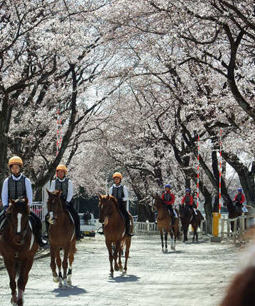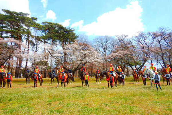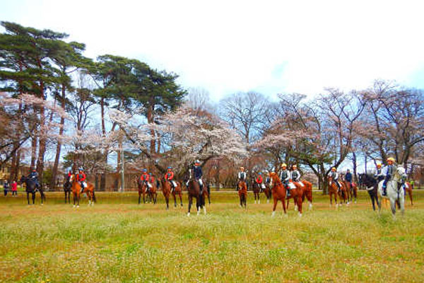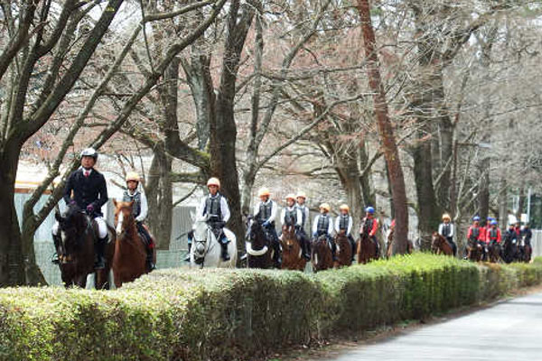 馬についても、外界の景色の中での経験は、精神的な調教にも役立つと考えて観桜外乗を行っています。