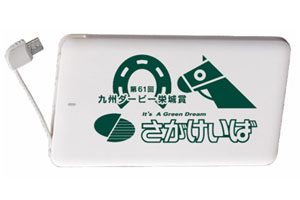 5月26日(日)に佐賀競馬場で行われる「第61回九州ダービー栄城賞」を記念して作られたオリジナルモバイルバッテリーを、佐賀県競馬組合様のご厚意でご提供いただきましたので、ファンの方10名様にプレゼントいたします。