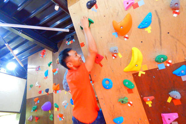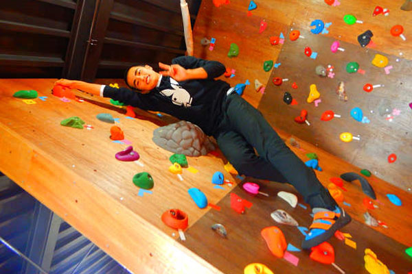 教養センターを出発したときは晴れていましたが、猪苗代湖周辺に到着したときは雨が降っていたため、湖で泳ぐ予定でしたが急遽(きゅうきょ)変更でボルダリングを体験させて頂きました。