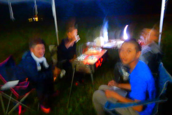 テント張り、夕食作り、さぁはじまりました夕食会!!!!!!!!!