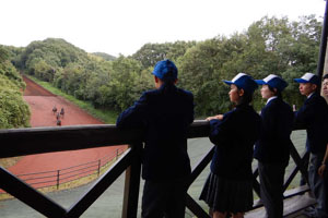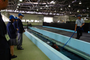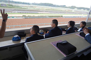 坂路調教や発走調教、追い切りなどを見学しました。また、馬のプールでの調教も見学させて頂きました。