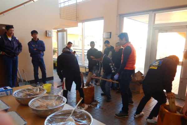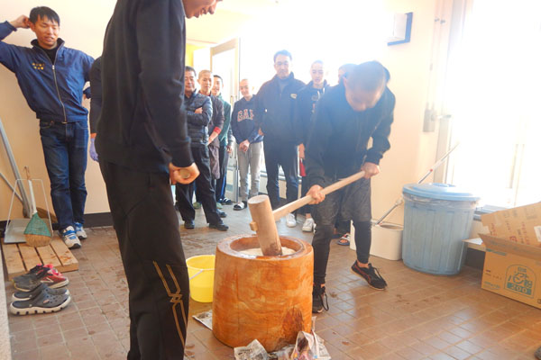 みんなでいただくお餅ということで、みんなそれぞれ1回は必ず搗くノルマが課せられています。