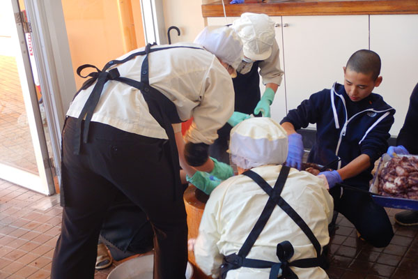 主に食堂のお姉さんが行って下さいました。その中に100期の飛田先輩がこれまた慣れた手つきで参加しています。