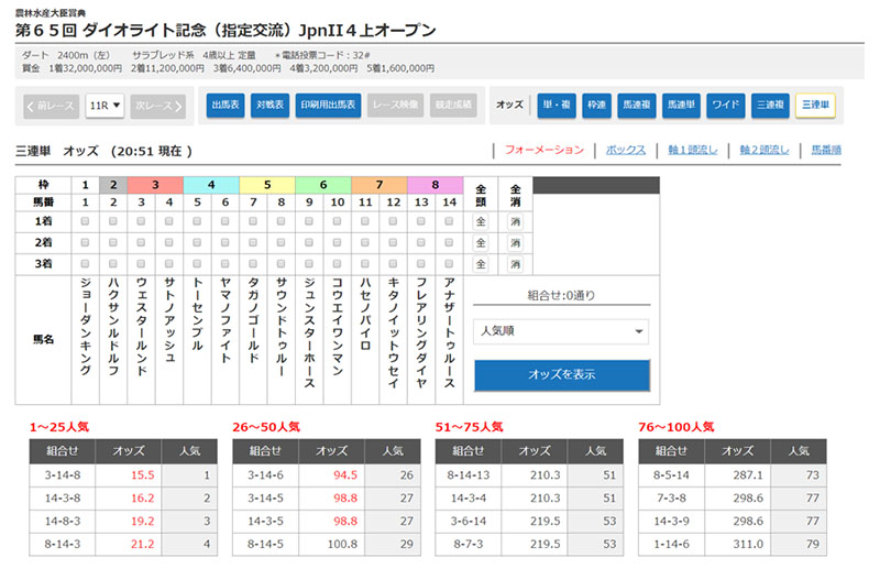 ・各賭式(単勝、複勝を除く)のトップを「フォーメーション」に変更し、ファーストビューに人気順全通りを表示いたします。