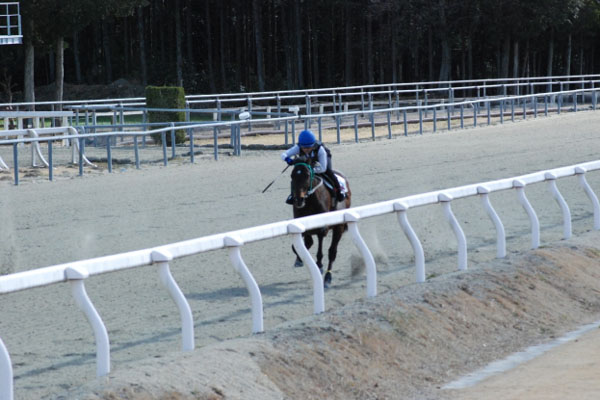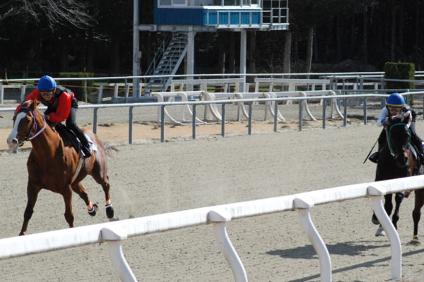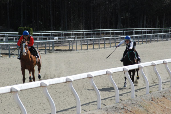 スタートは今までで1番良かったですが、すぐに抑えに入ってしまい併走することが出来ませんでした。馬場の中央よりも外側を通ってしまい、誘導が全く出来ませんでした。前回の注意点を意識できずに終わってしまい余裕がない騎乗になってしまいました。普段からイメージトレーニングして、次の訓練で大きく成長出来るようにしたいと思います。