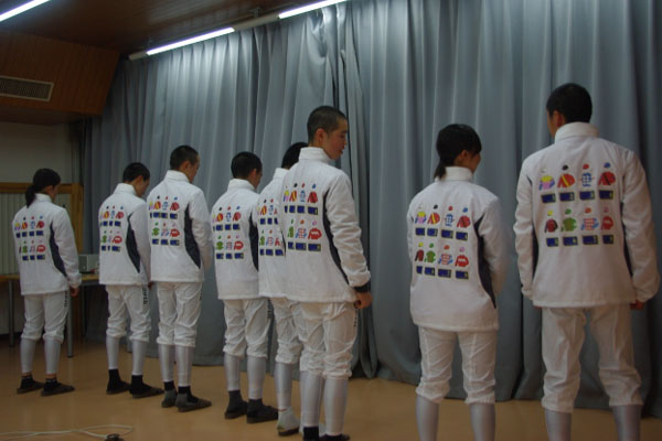 続いて勝負服紹介。1人ずつ柄と色を決めたいきさつ等を紹介。(修了式ブログにて紹介)