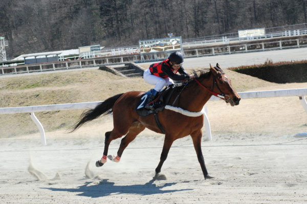 春の気配が漂い始めた、ここ地方競馬教養センターでは3月25日に第99期騎手候補生8名の修了式典を挙行いたしました。本日をもって修了生は、全国の競馬場へ旅立ちます。修了供覧では、模擬レースを披露しました。