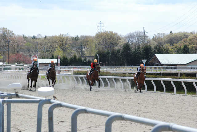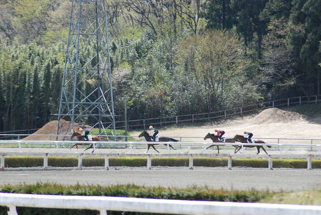 4月24日に101期は集団騎乗(左回り1280m)を行いました。コロナ対策の勤務体制で人員不足もあり、ゲートを使用しての発進は出来ませんでしたが、今回初めて集団を形成してレースと同じような感覚の中で訓練することもあり、緊張した中での訓練となりました。