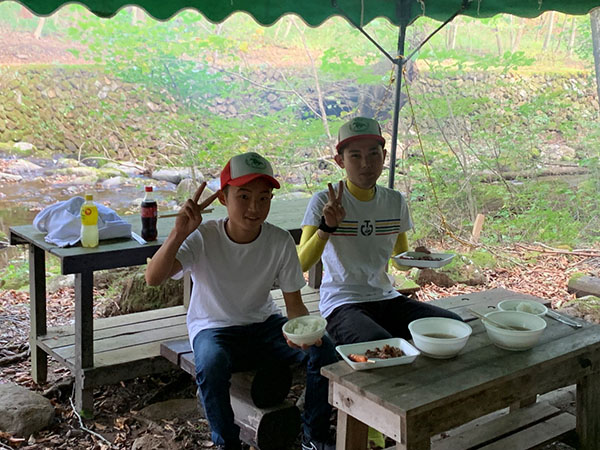 野菜を切ったり炭を起こしたり、豚汁を作ったりと協力してやりました!!