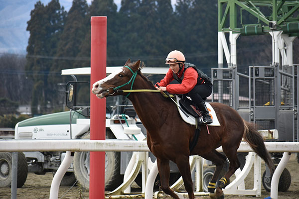 上手く馬について行けましたが、開扉したゲートから馬の反応が悪く出るのが遅かったので、もっと早く出せるようにしたいです。