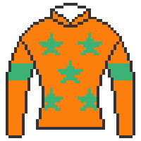 厩舎カラーのオレンジに緑を入れて目立つようにし、兄弟子である半沢騎手の柄を頂きました。 |
