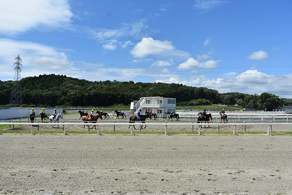 競馬場実習前の最後の競走実習で、地方競馬を担うトップジョッキーの方と一緒にレースをできる貴重な機会でした。入所してから今日までの訓練の成果を発揮できるよう一致団結しレースに臨みました。