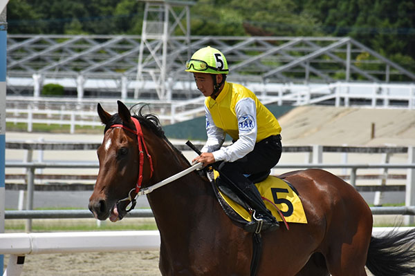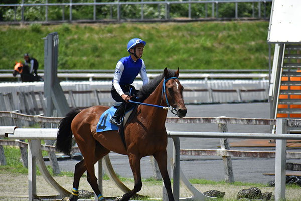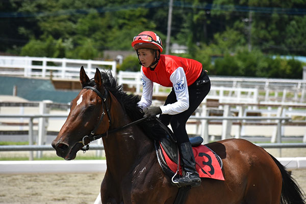 ゲート内で馬を落ち着かせることができたこと、コーナーの周り方を気を付けて乗ることができたのは収穫でした。ですが、人が焦って3Cで仕掛けてしまい最後の直線で伸びを欠いてしまいました。今後は焦らず馬を信じ乗れるよう心がけていきたいです。