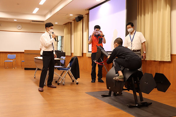 104期、105期合同で桑島参与、宮川騎手にレースの解説と騎手としての心構えや騎乗姿勢の実演、候補生の追い込み姿勢を見ていただきました!