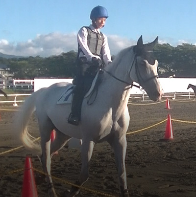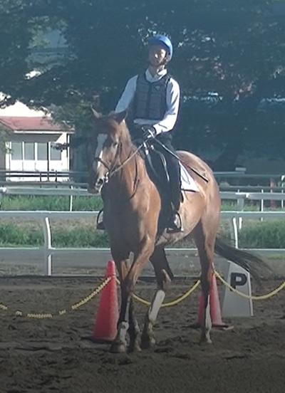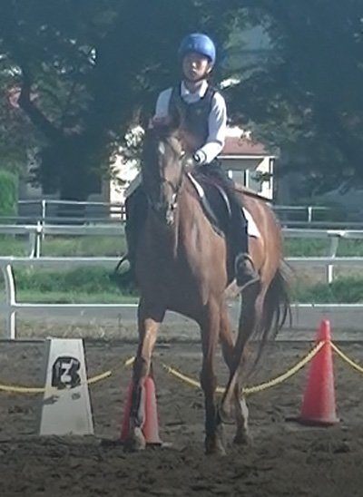 今回も馬に助けてもらって合格することが出来ました。正しい扶助操作ができていない事が多いので、脚を中心に改善し、今度こそは、自分の力で合格できたといえるように第2回障害技能審査に向けて、日々の訓練を頑張りたいです。