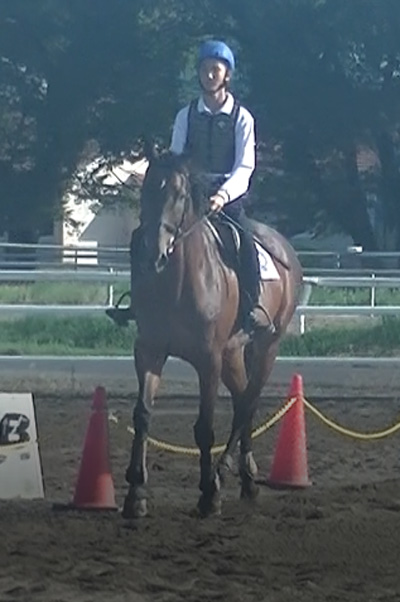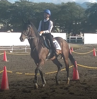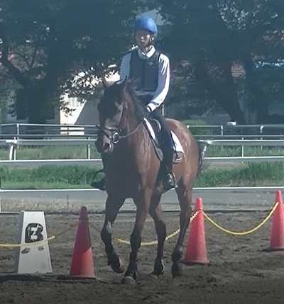 苦手な馬場でしたが、練習していく中で課題としていた物見や歩度の伸縮性などをうまく修正でき、本番ではまとまった騎乗をすることが出来ました。次の障害審査では今以上に操作する力が求められるのでより一層頑張っていきたいです。