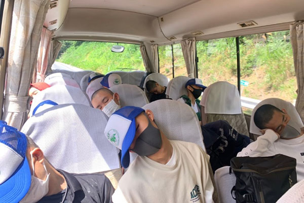 数分経つと全員が爆睡。朝の訓練で疲れた様子でした...
