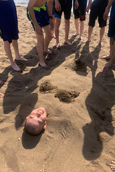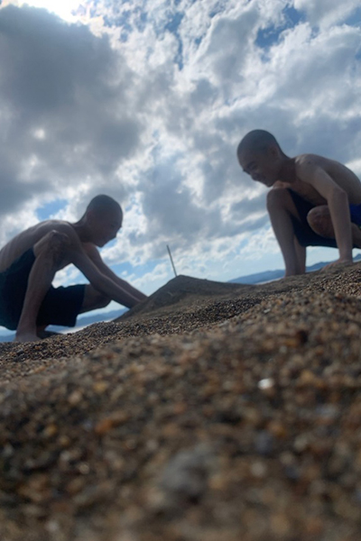 山を作り、棒倒しをしていました!どっちが勝ったのでしょうか。