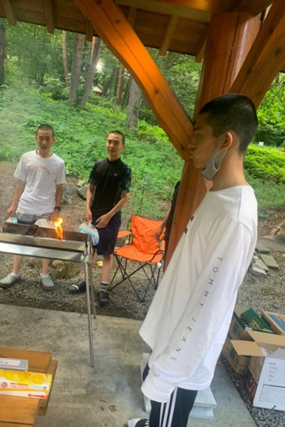 火起こし担当は新庄君、山本君、髙橋君の3人!