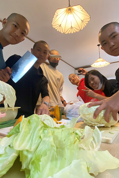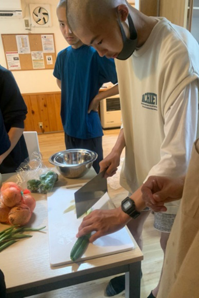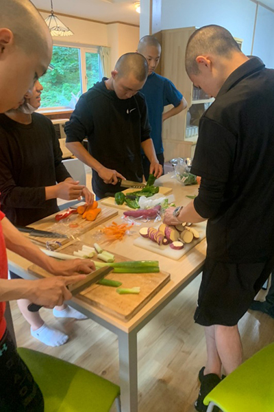 食材担当は一つのテーブルを囲んで、手際良く野菜などを切っていました!大きさ、形はバラバラでしたが...(笑)
