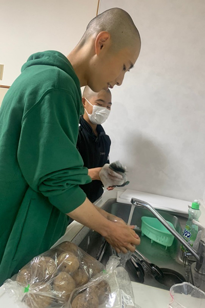 ポテトサラダ担当の2人は調理しながらつまみ食い(笑)