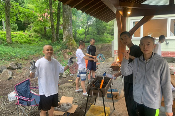 空も薄暗くなり、BBQ会場はライトアップ!教官とゆったりな時間を過ごしました。