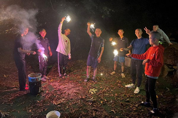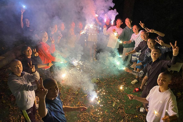 BBQの締めは花火!16人同時に点火!花火で綺麗な円はできたかな?