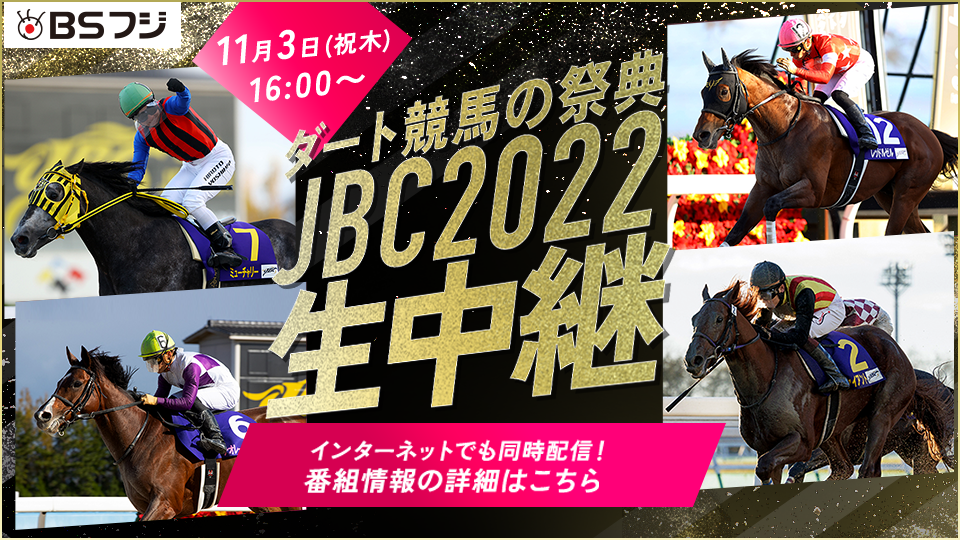 ◆生中継の詳細はBSフジ番組ページ「ダート競馬の祭典JBC2022」をご覧ください。