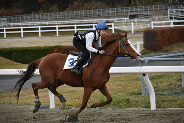 練習の時はあまり折り合いをつけることが出来なかったのですが、本番では少し折り合いをつけることが出来ました。まだ自分のバランスや姿勢など色々足りていないのでこれからの訓練で身に付けていきたいです。12月に入ると追い込み操作や発走などもっと難しくなってくるので自主トレをして訓練に遅れないように頑張っていきたいです。