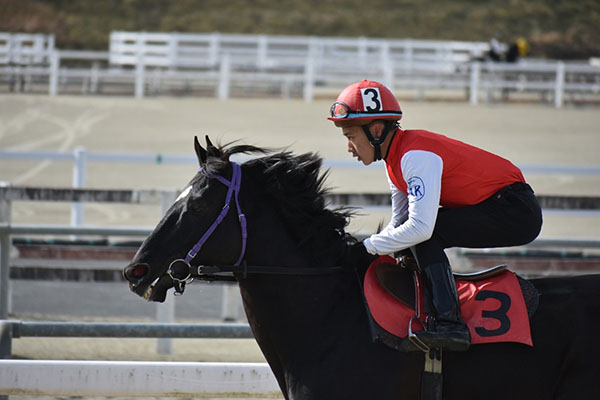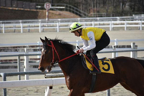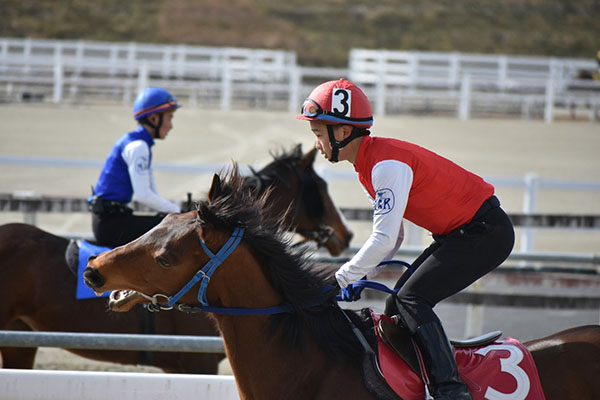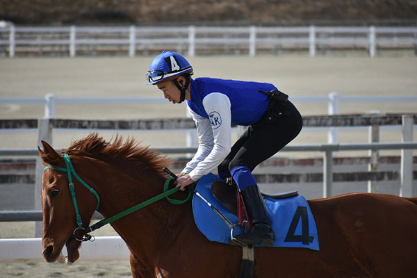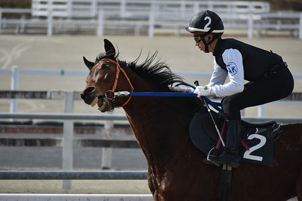 ゲートを出てからの判断や進路取りは上手く対応できました。しかし、4コーナーでのホームストレッチへの進出の際、外に張ってしまいました。修了試験に向け、しっかり修正していかなければならないと思いました。
