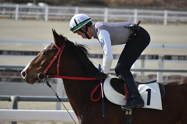 ゲートをスムーズに発進させることができたのは良かったです。ですが、ポジションを決めるまでに時間がかかってしまいました。その判断をもっと素早くできるようになりたいです。追い込みでは手綱の詰め替えをスムーズに行えませんでした。もっと木馬でのトレーニングを繰り返していきたいです。
