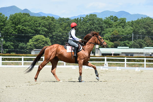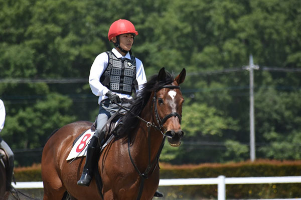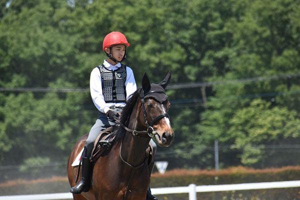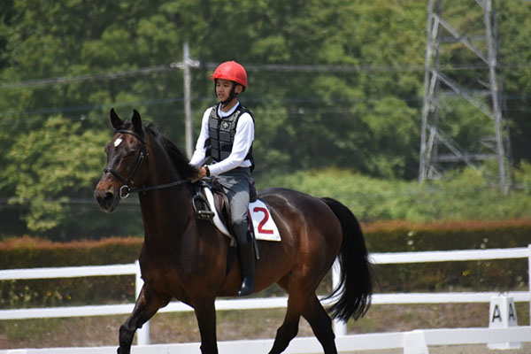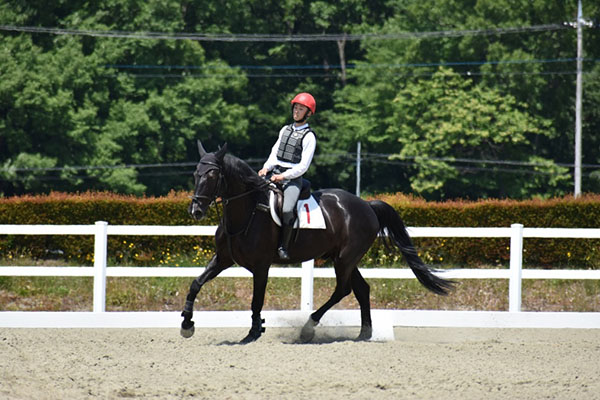 今回初めての技能審査でしたが、練習の成果を十分に発揮することが出来ました。ただ、扶助が馬に伝わらず練習で出来ていたことが本番で出来なかった点があったので、本番でも練習と同じように出来るようにこれからの訓練も頑張って行きたいです。