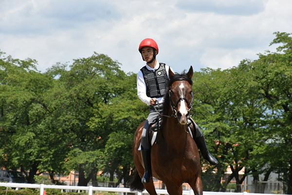 4月から馬に乗り始めて、初めての技能審査でしたが無事合格出来て良かったです。これからは他の人との差を埋められるように毎日の訓練を頑張ります。