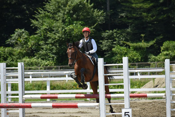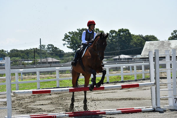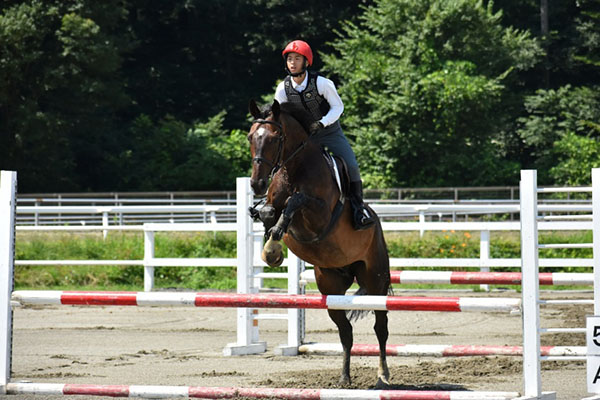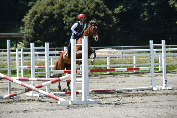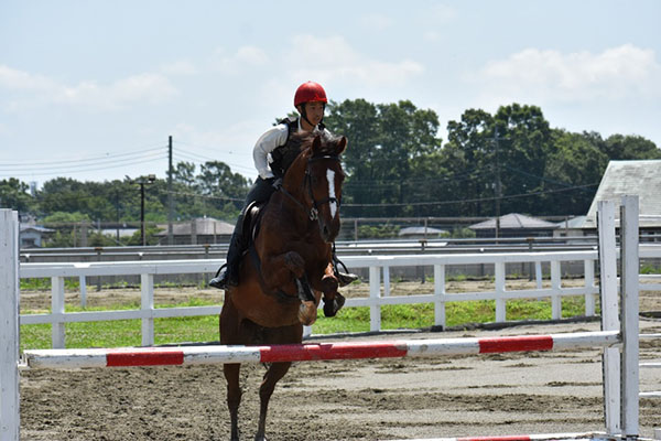 今回の技能審査では、障害に対して真っすぐ馬を誘導し、良いペースを作ることを意識して乗りました。しかし、障害の前で止まってしまい、人が焦ってしまったために誘導が雑になってしまいました。良い結果を出すことは出来ませんでしたが、今後の課題を見つけることが出来たので、日頃の訓練や次の技能審査に向けて頑張ります。